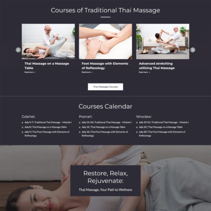 For Integrated Thai Massage company, we crafted a website encompassing web design, WordPress development, and hosting services. The owner of this business, Piotr, has resided in Thailand for 20 years and is a certified Thai Massage Teacher and Instructor. On his website, Piotr offers courses in Traditional Thai Massage, which he organizes in various parts of the world.